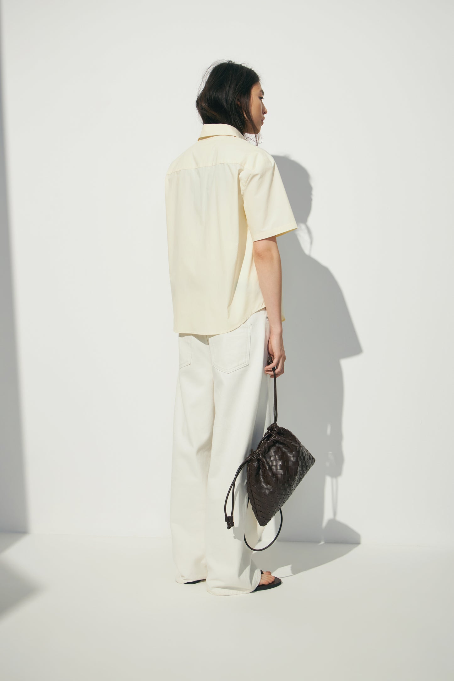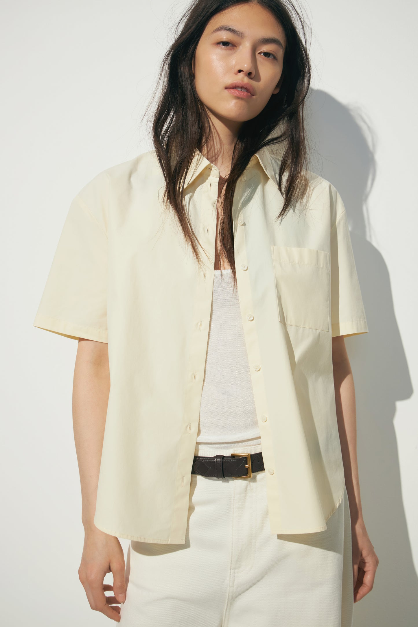 Straight-fit shirt with short sleeves in cotton poplin. Featuring a collar and open chest pocket. Rounded hem. Button-up front.