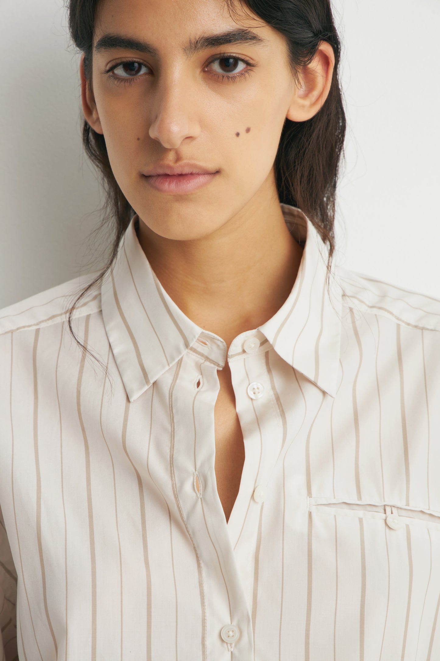 Straight fit shirt with cuffed long sleeves in cotton. Featuring a collar and welt chest pocket. Rounded hem. Button-up front.