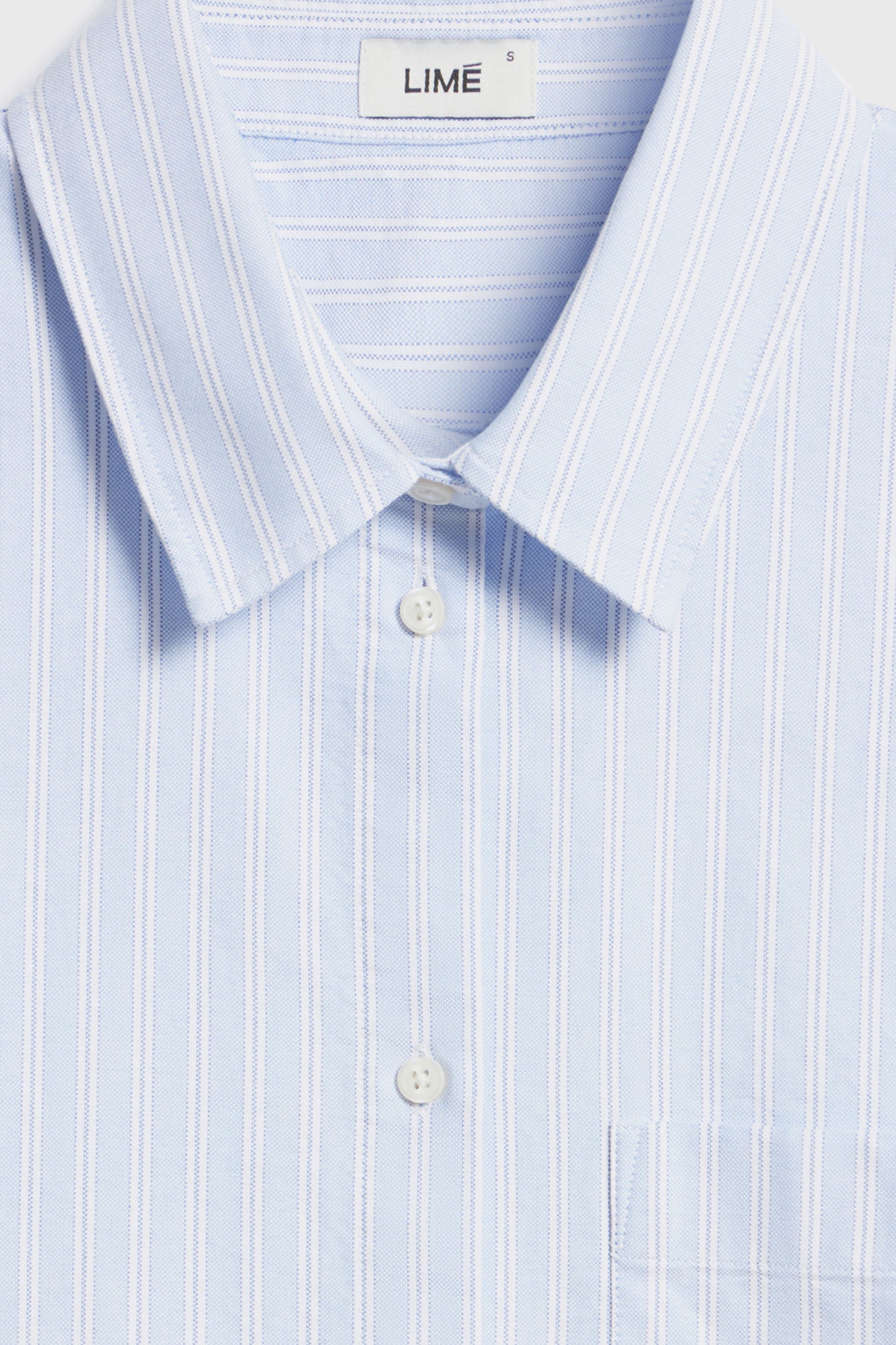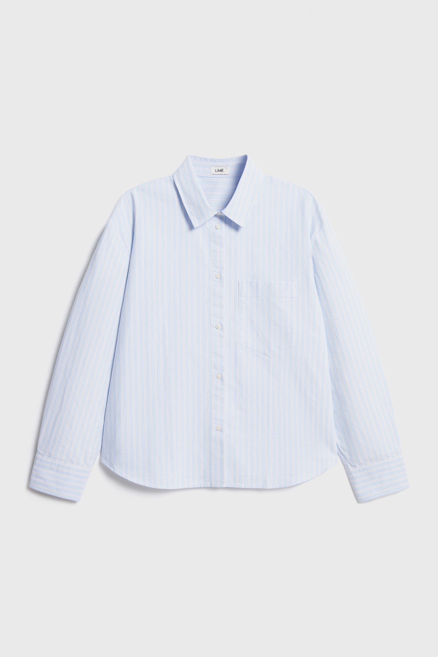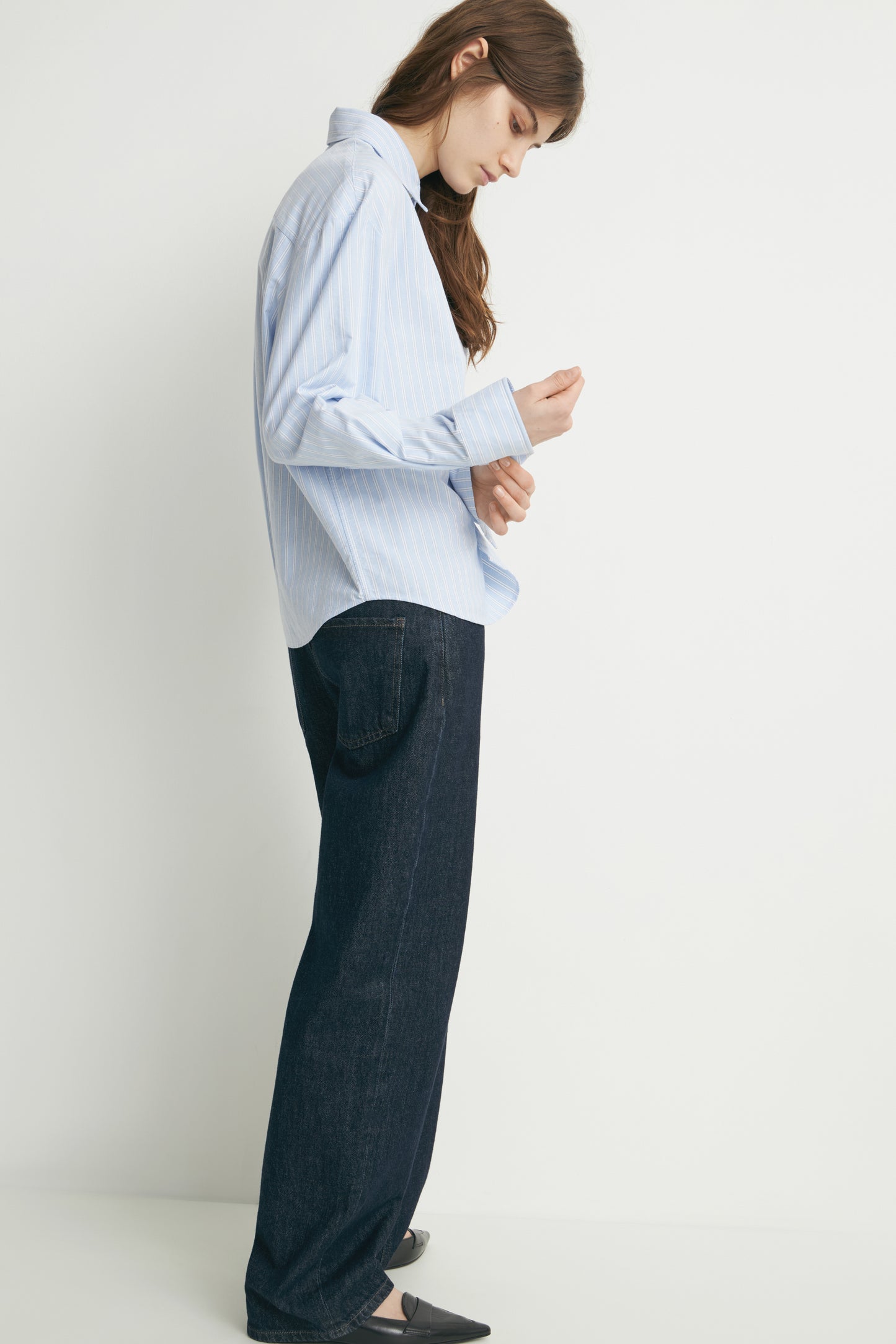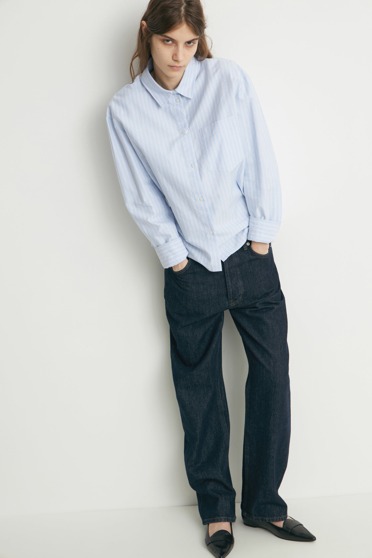 Straight-fit shirt in textured Oxford cotton. Featuring a collar, cuffed long sleeves, and open chest pocket. Rounded hem. Button-up front.