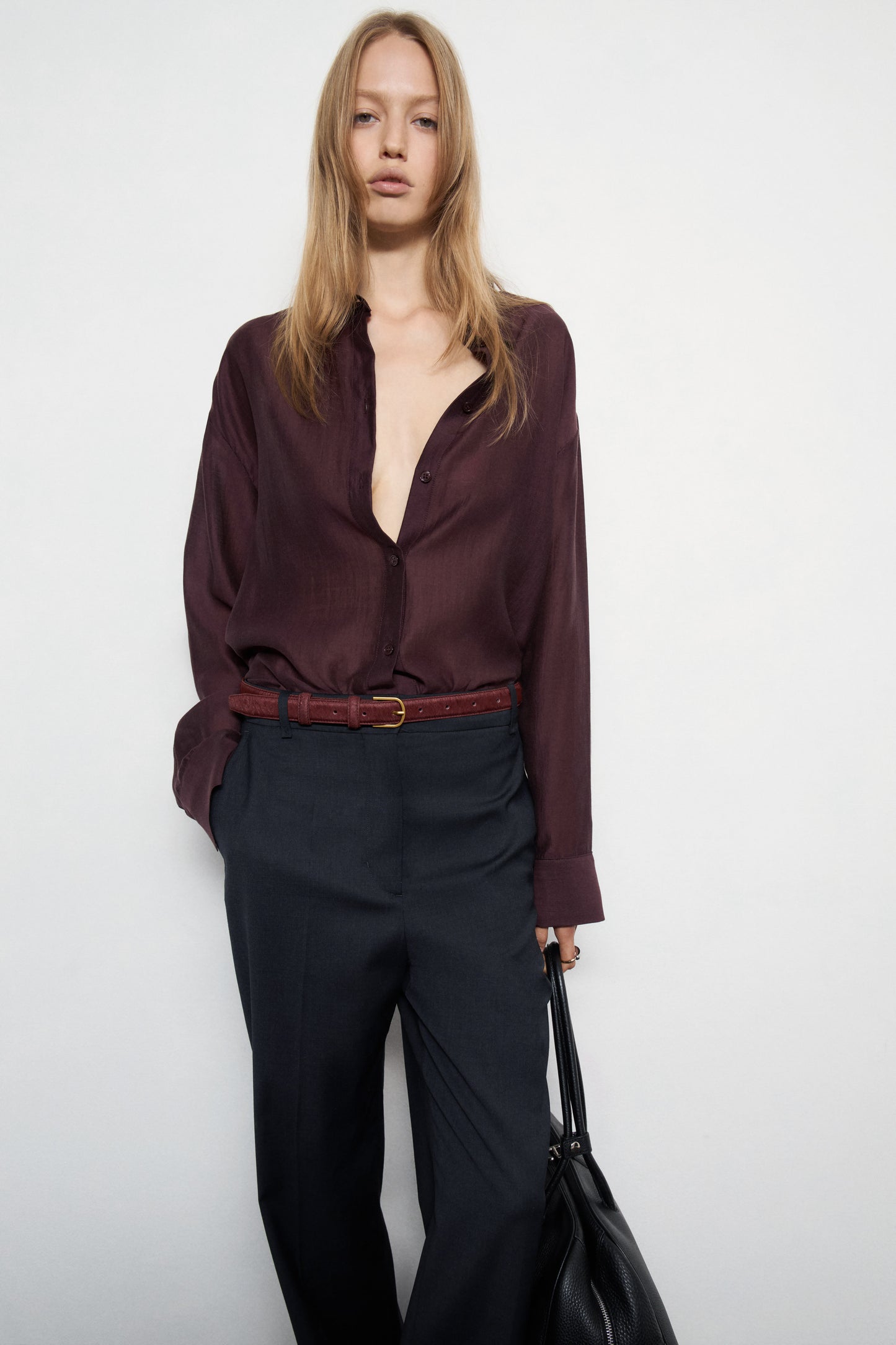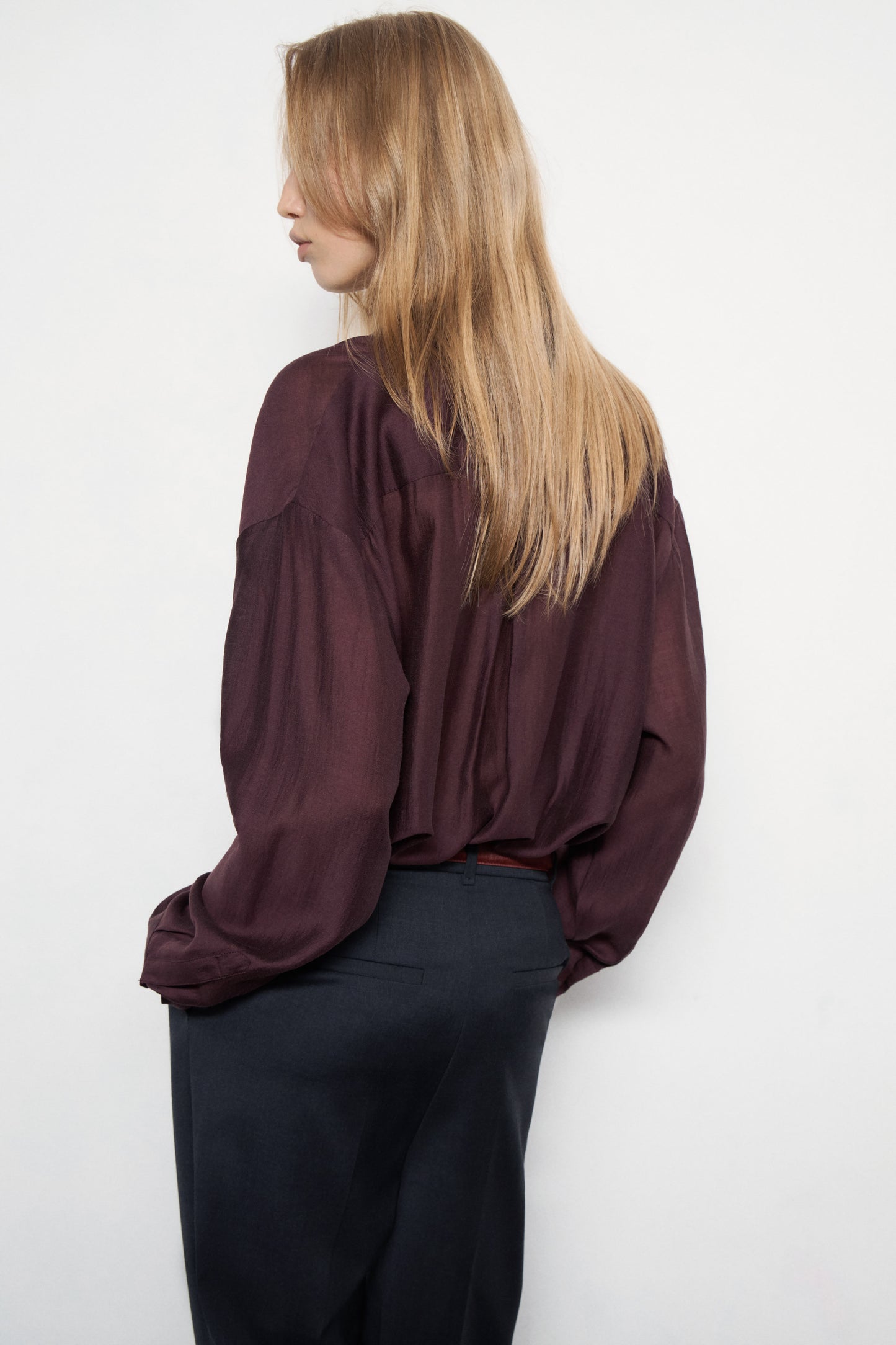 Straight fit shirt with cuffed long sleeves in lyocell blend contain some wool. Featuring a collar. Pleated detail at the back. Button-up front.