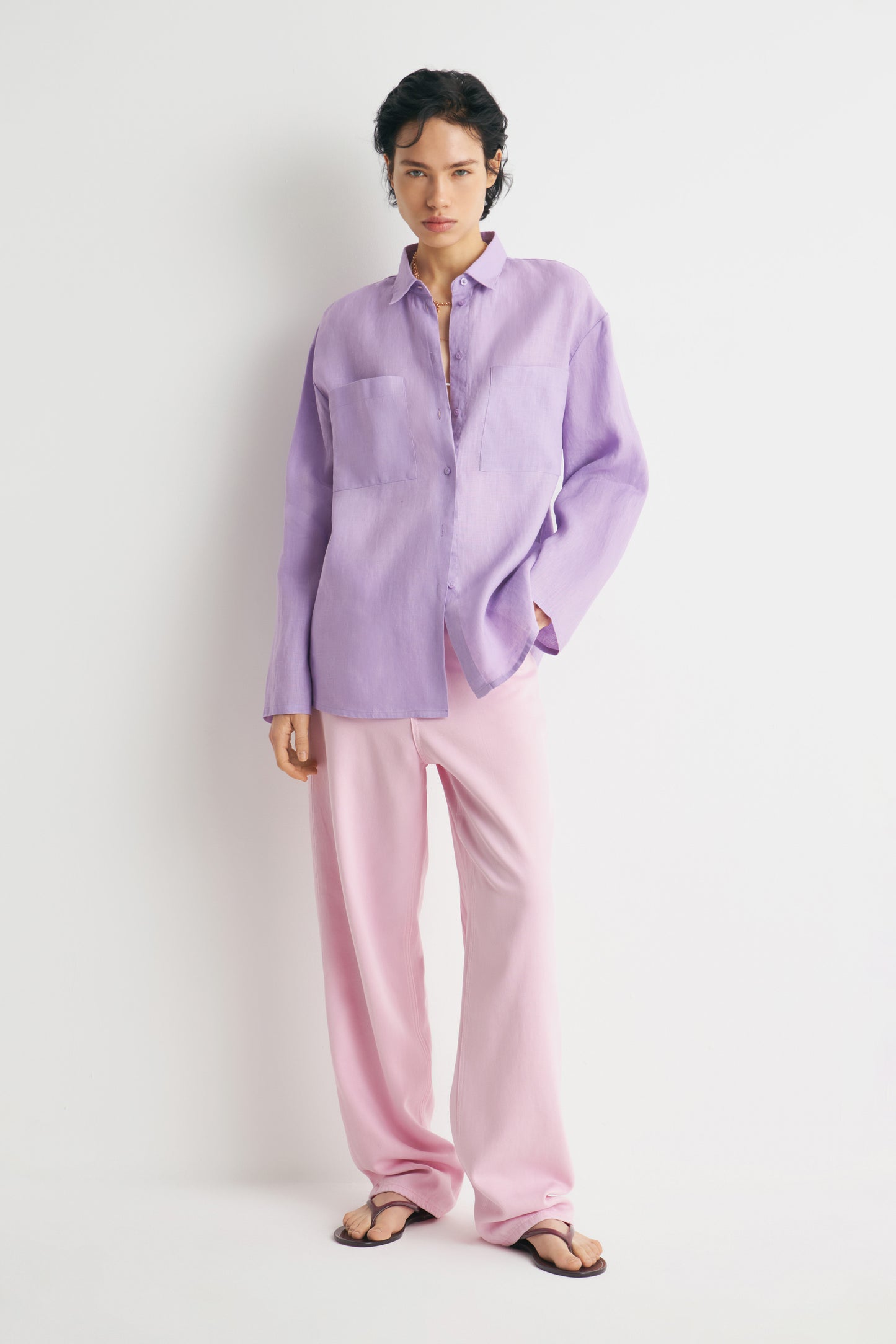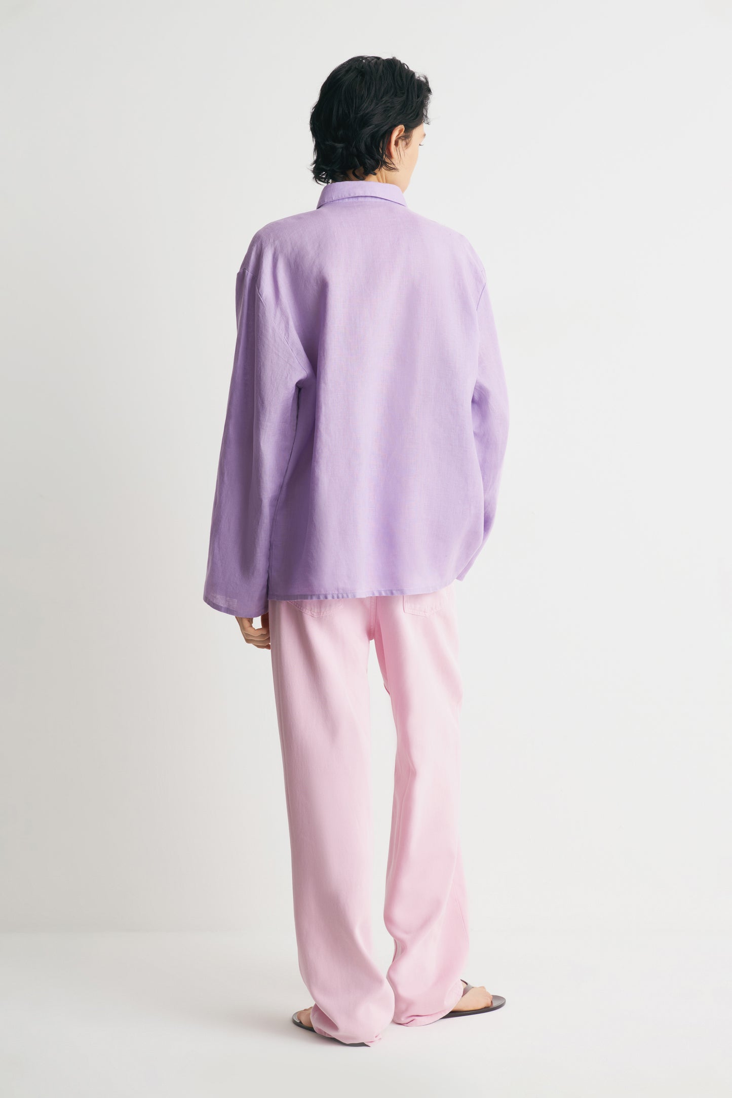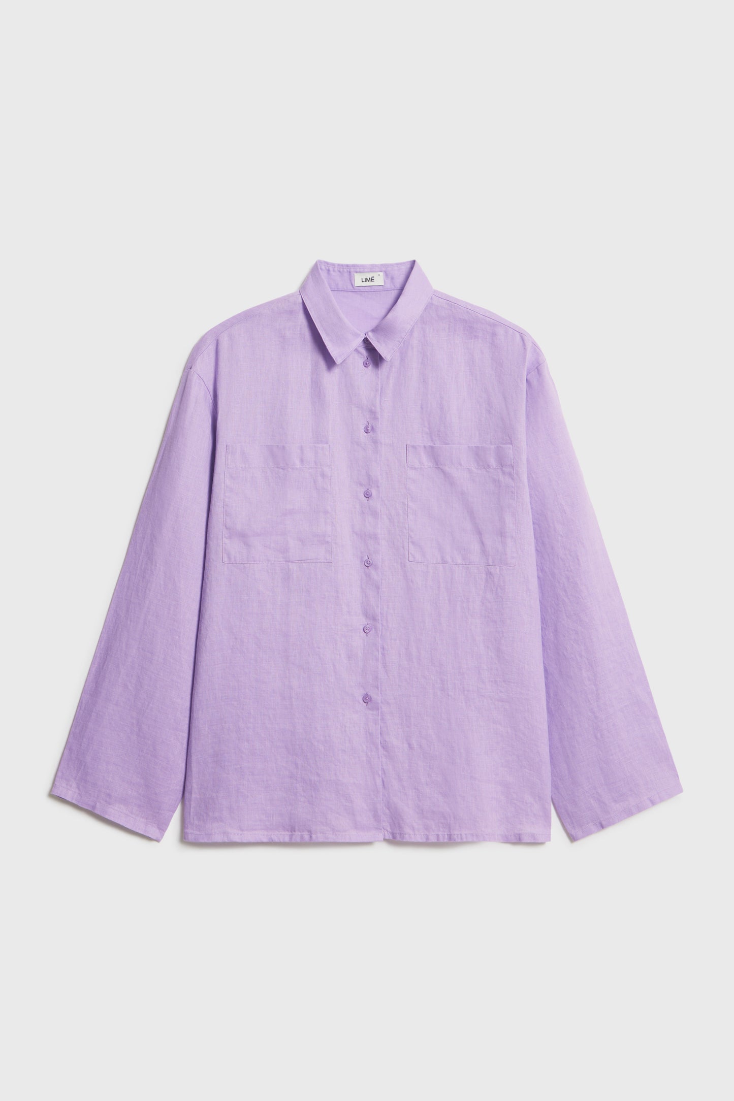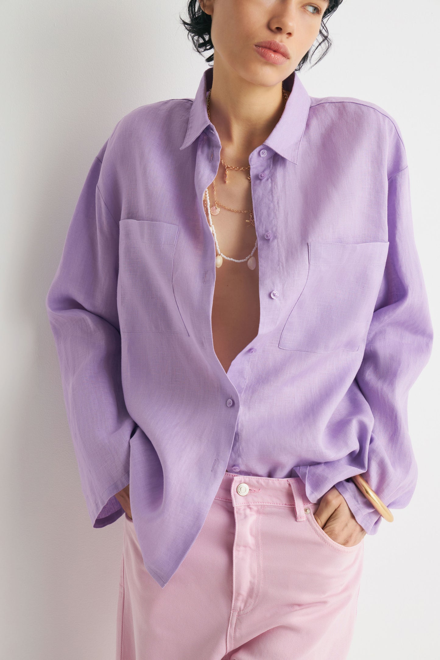 Straight-fit shirt in textured linen with long sleeves. Pair of chest pockets. Featuring a classic collar. Straight hem. Button-up front.
