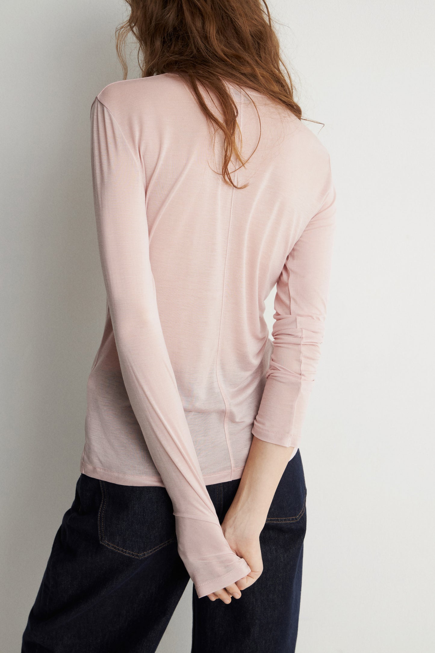 Straight-fit top in lyocell with a round neckline, long sleeves and a straight-cut hem. Visible team detail at the back.