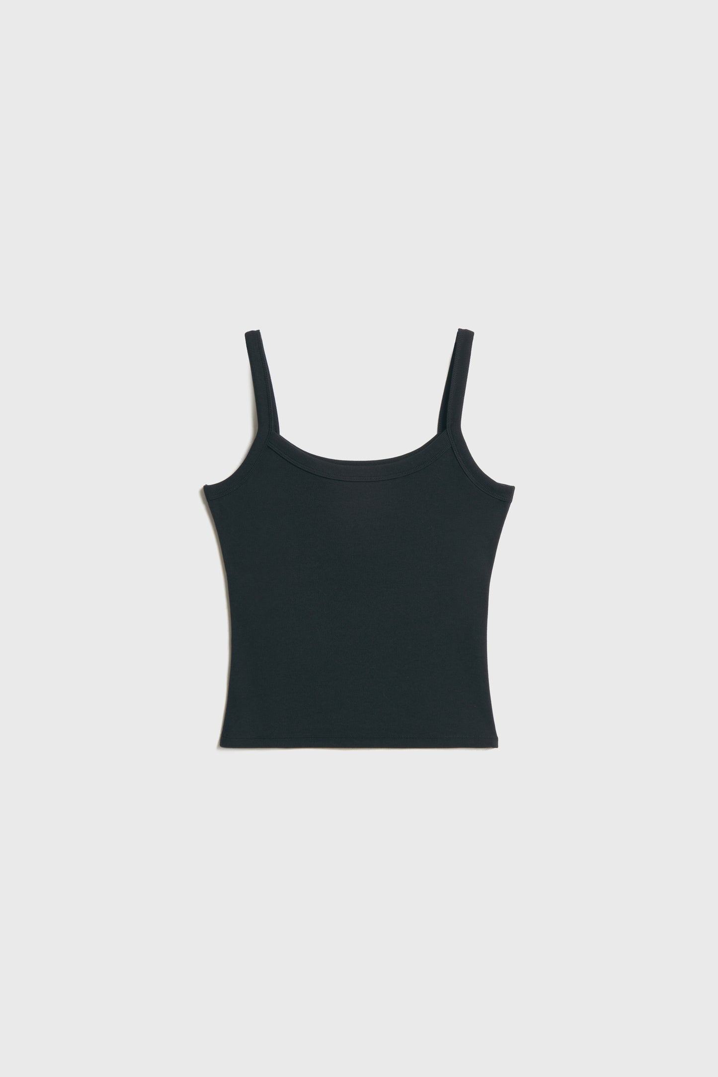 Top in stretch cotton and viscose blend with a straight neckline. Narrow shoulder straps.
