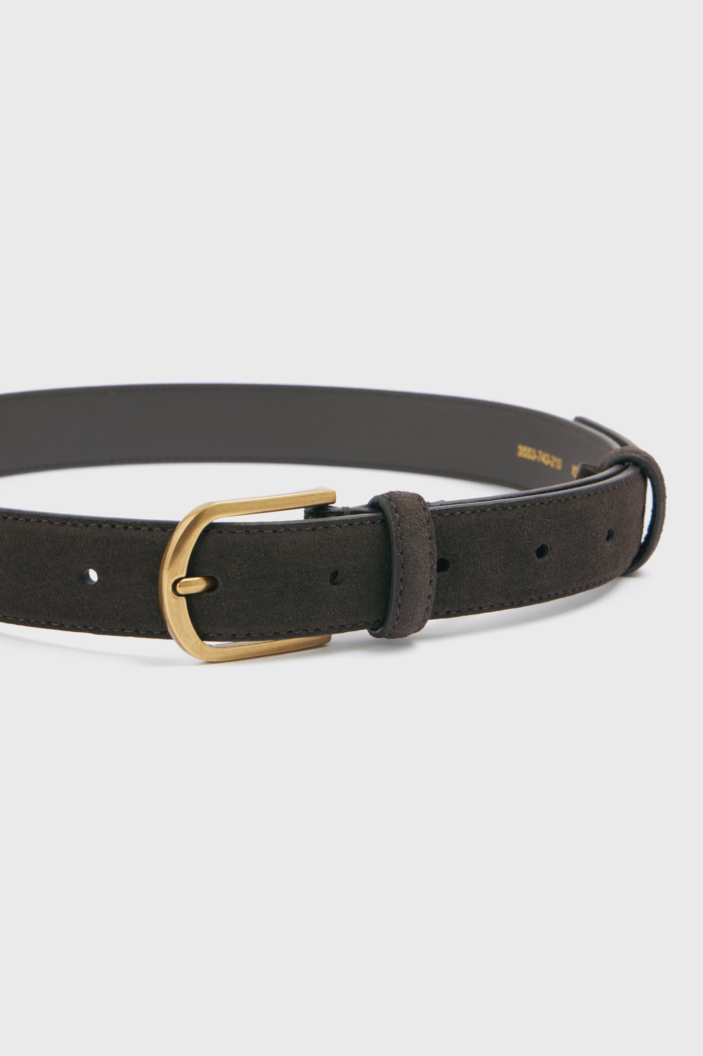 Plain suede belt with metal buckle. Size: XS/S – 94 x 2,8 cm M/L – 106 x 2,8 cm