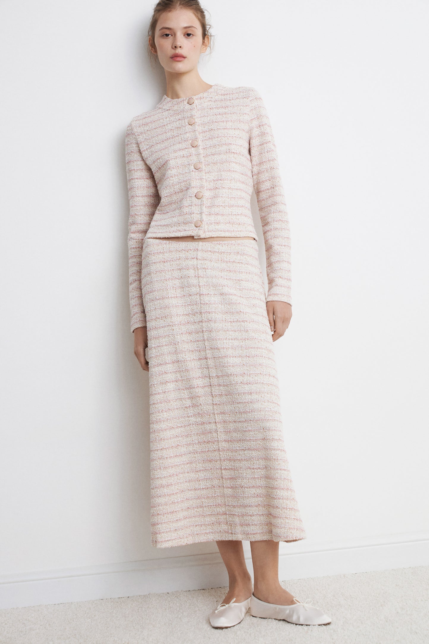 MÉLANGE-WEAVE FLARED SKIRT