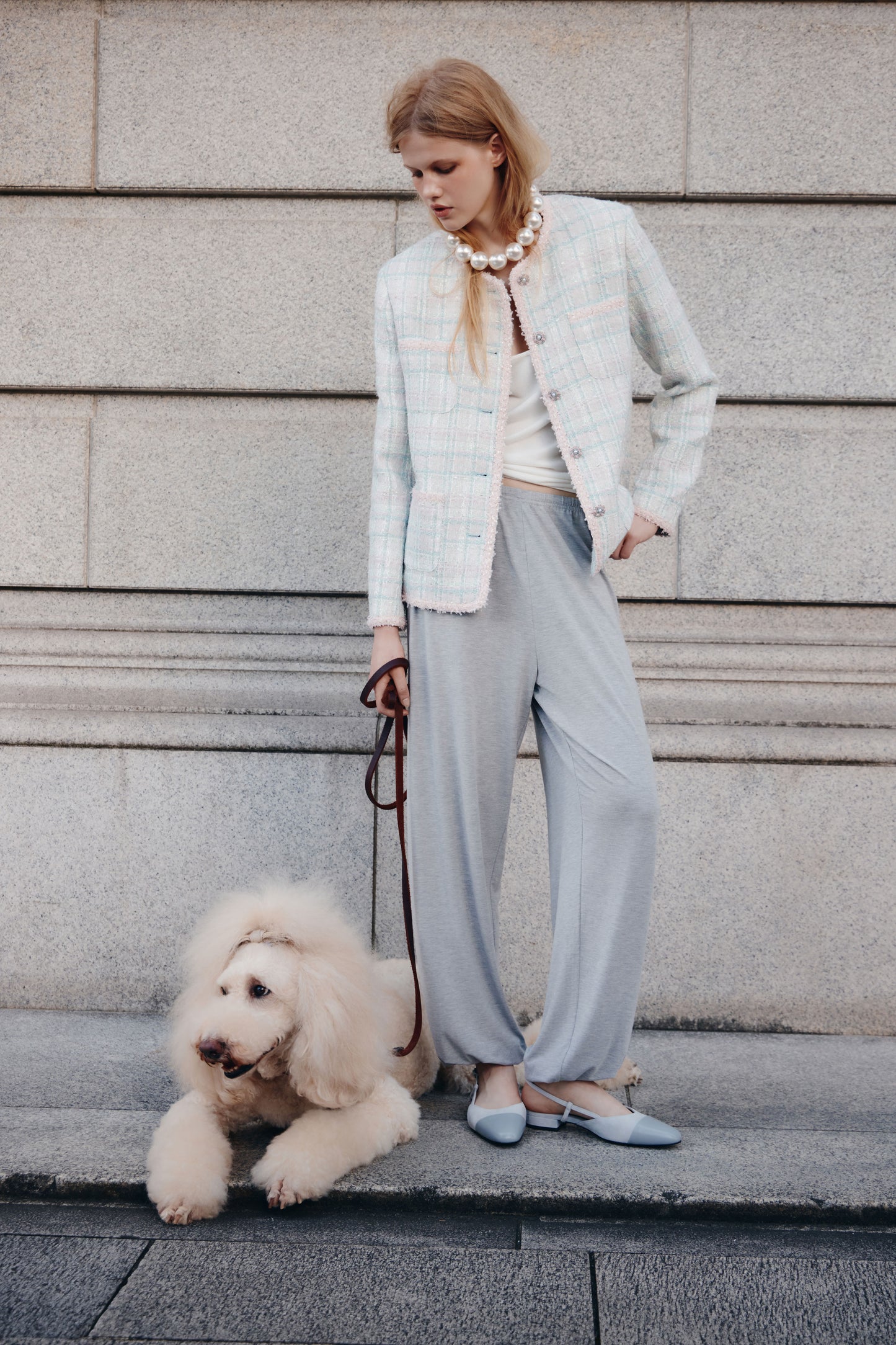 TEXTURED-WEAVE STRAIGHT FIT BLAZER