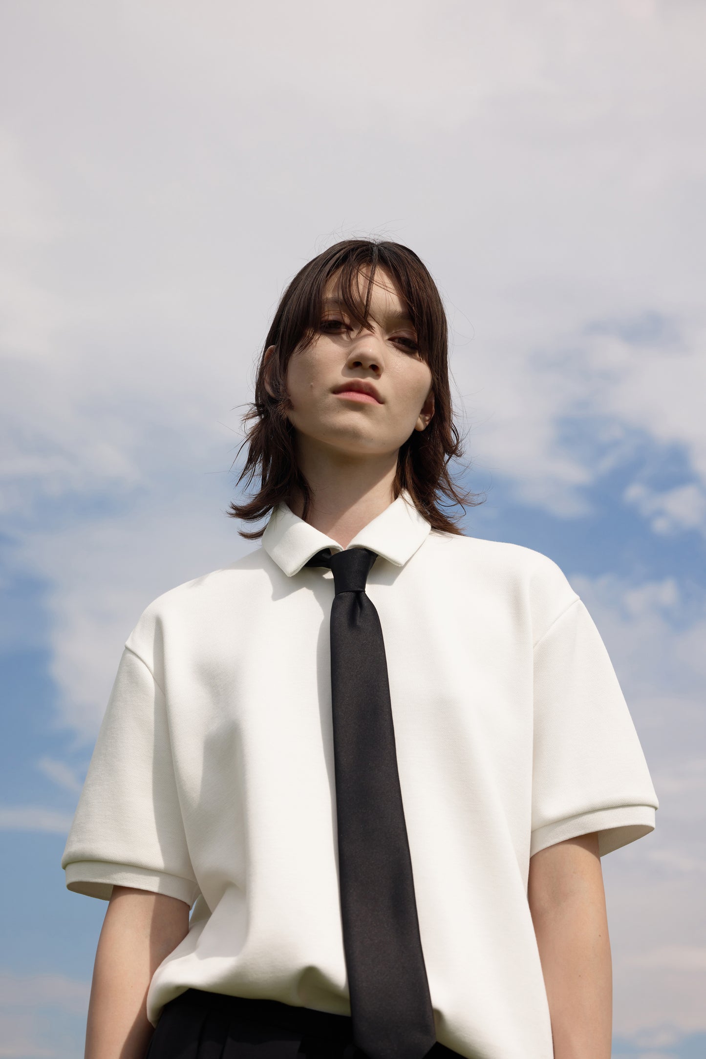T-shirt in soft cotton and modal jersey with a round neck, collar and short sleeves. Featuring a tie and hidden buttons on the front.