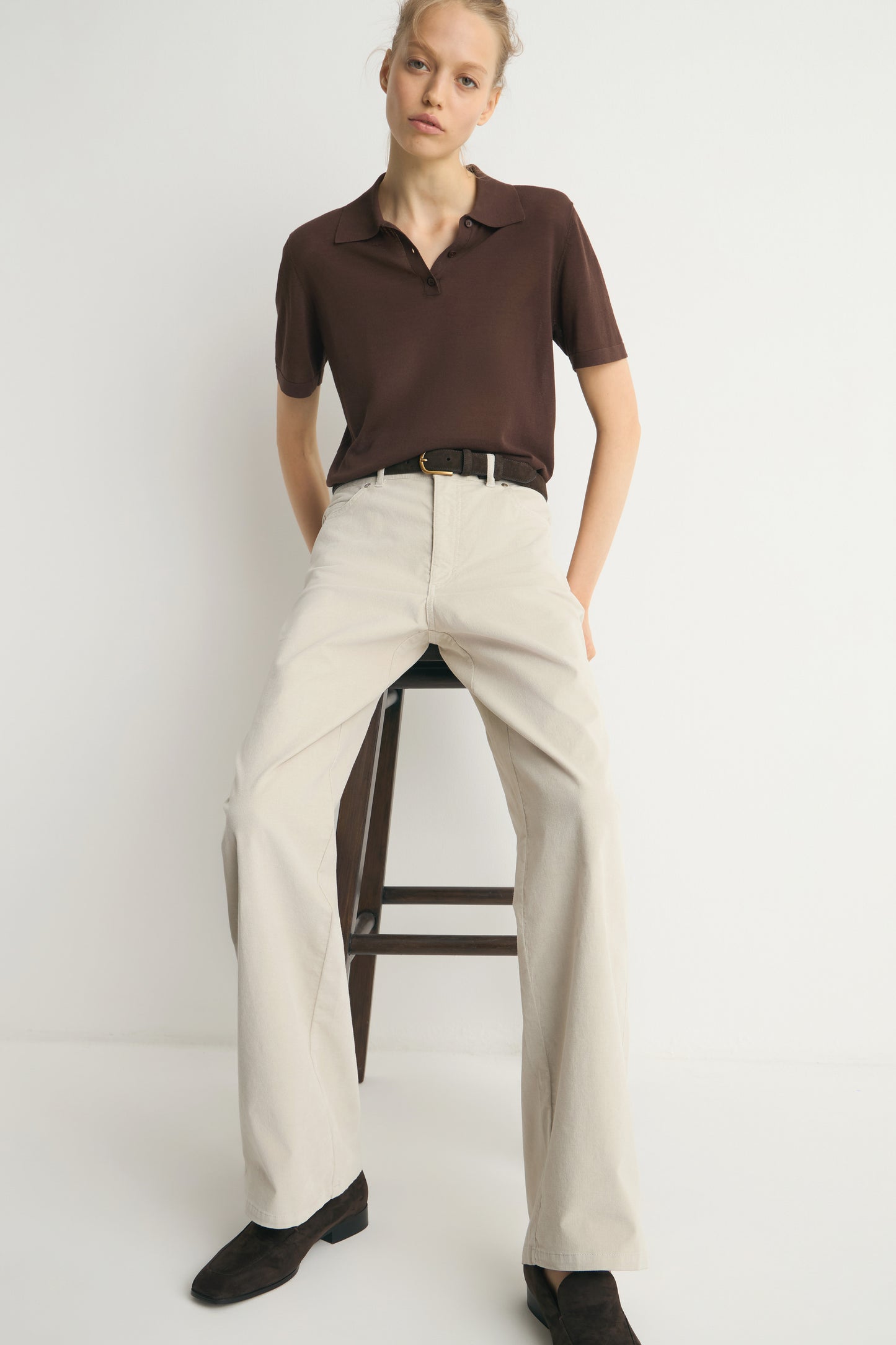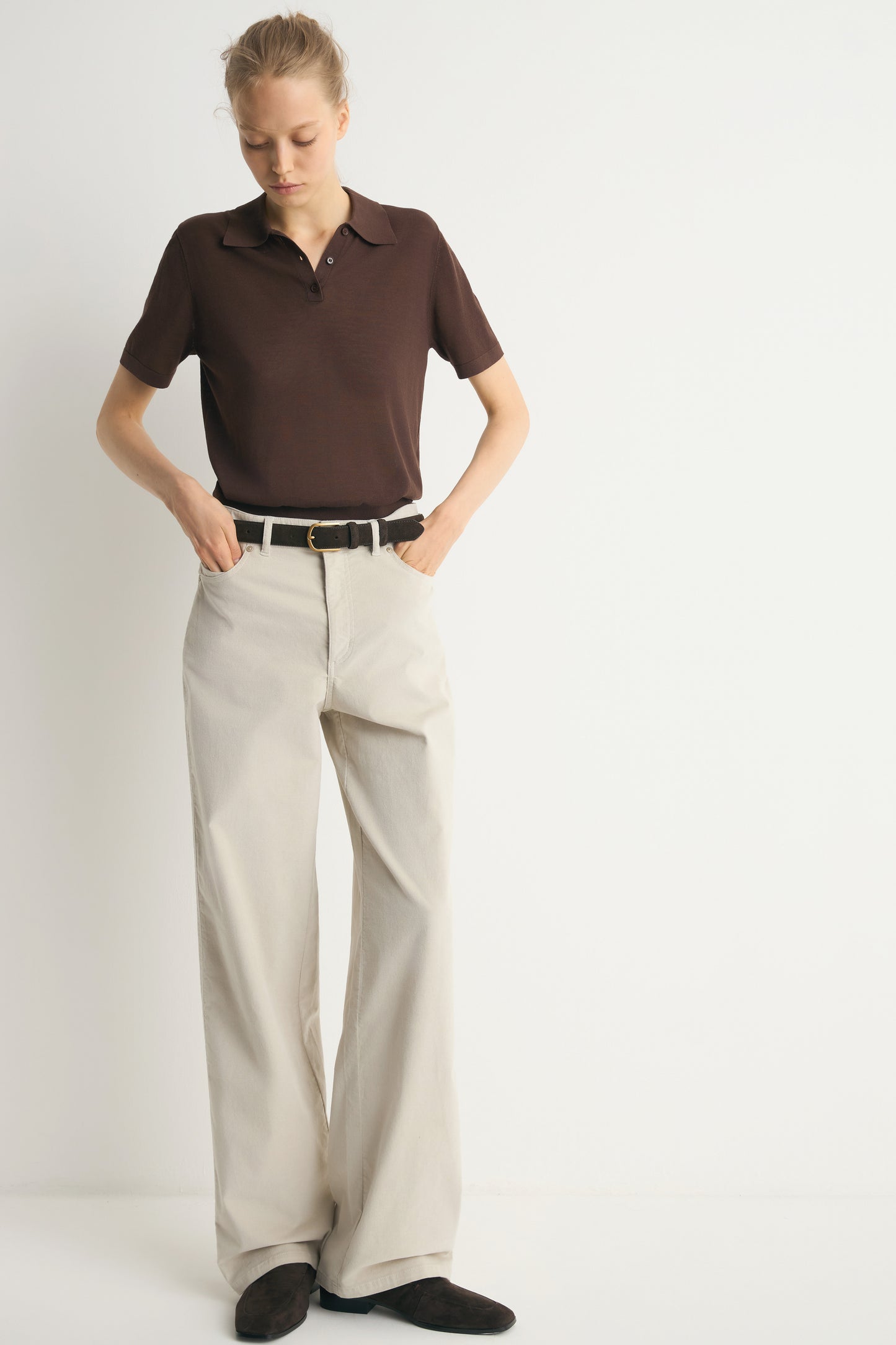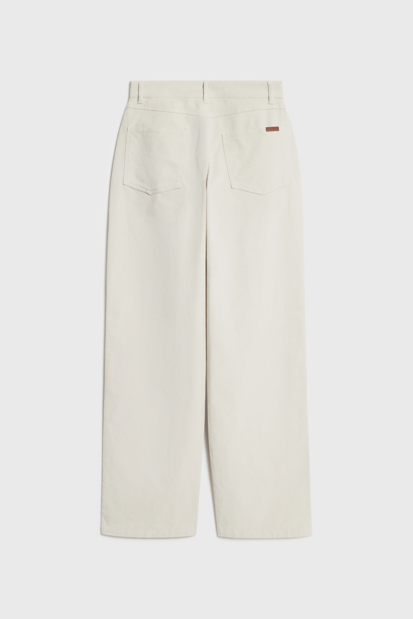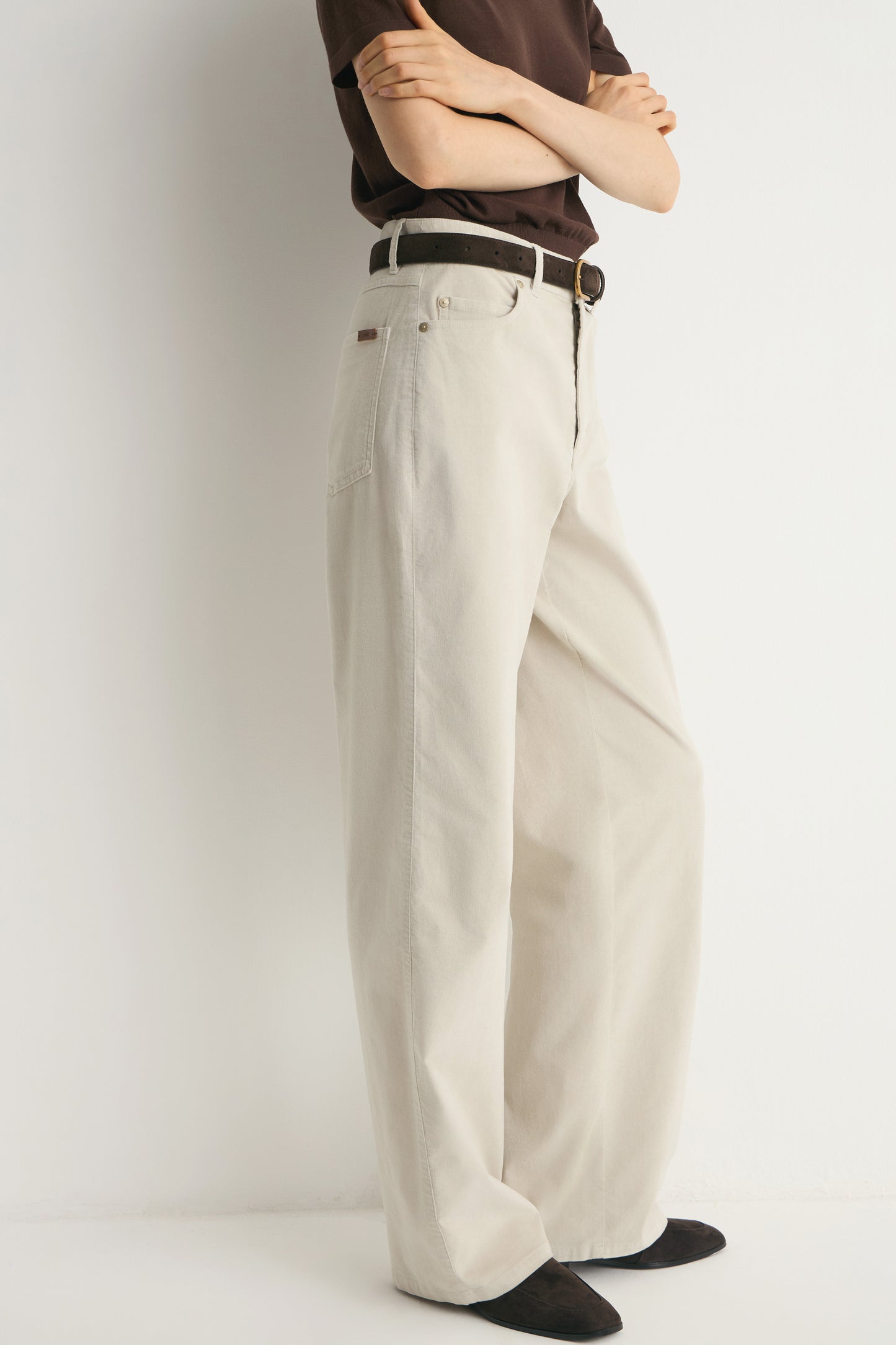 Trousers in soft cotton corduroy with a five-pocket design. Straight legs. Front zip fly and metal button fastening.