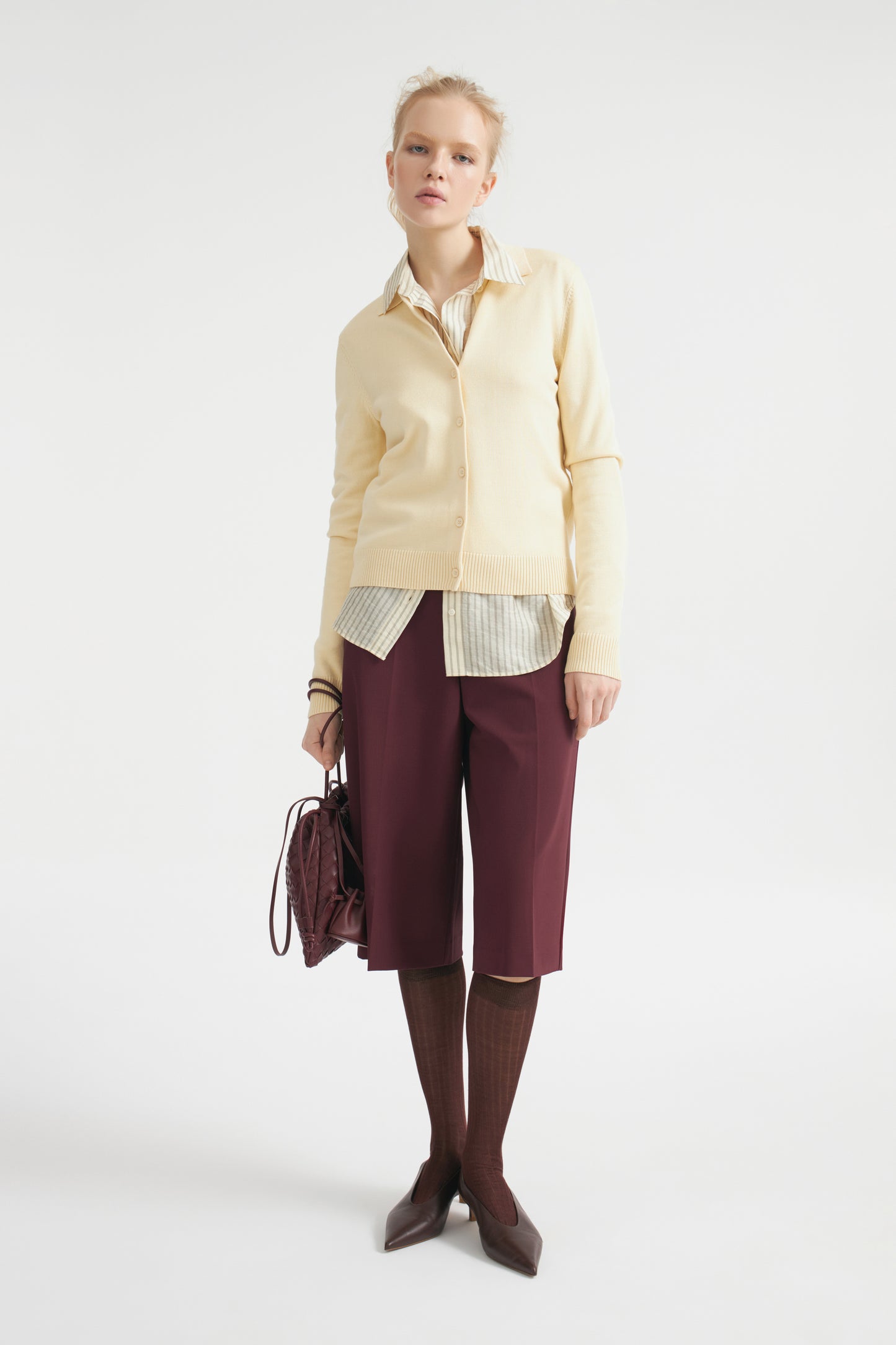 Cardigan made of spun viscose. Styled with a collar, long sleeves and button-up front. Designed with a slim silhouette.