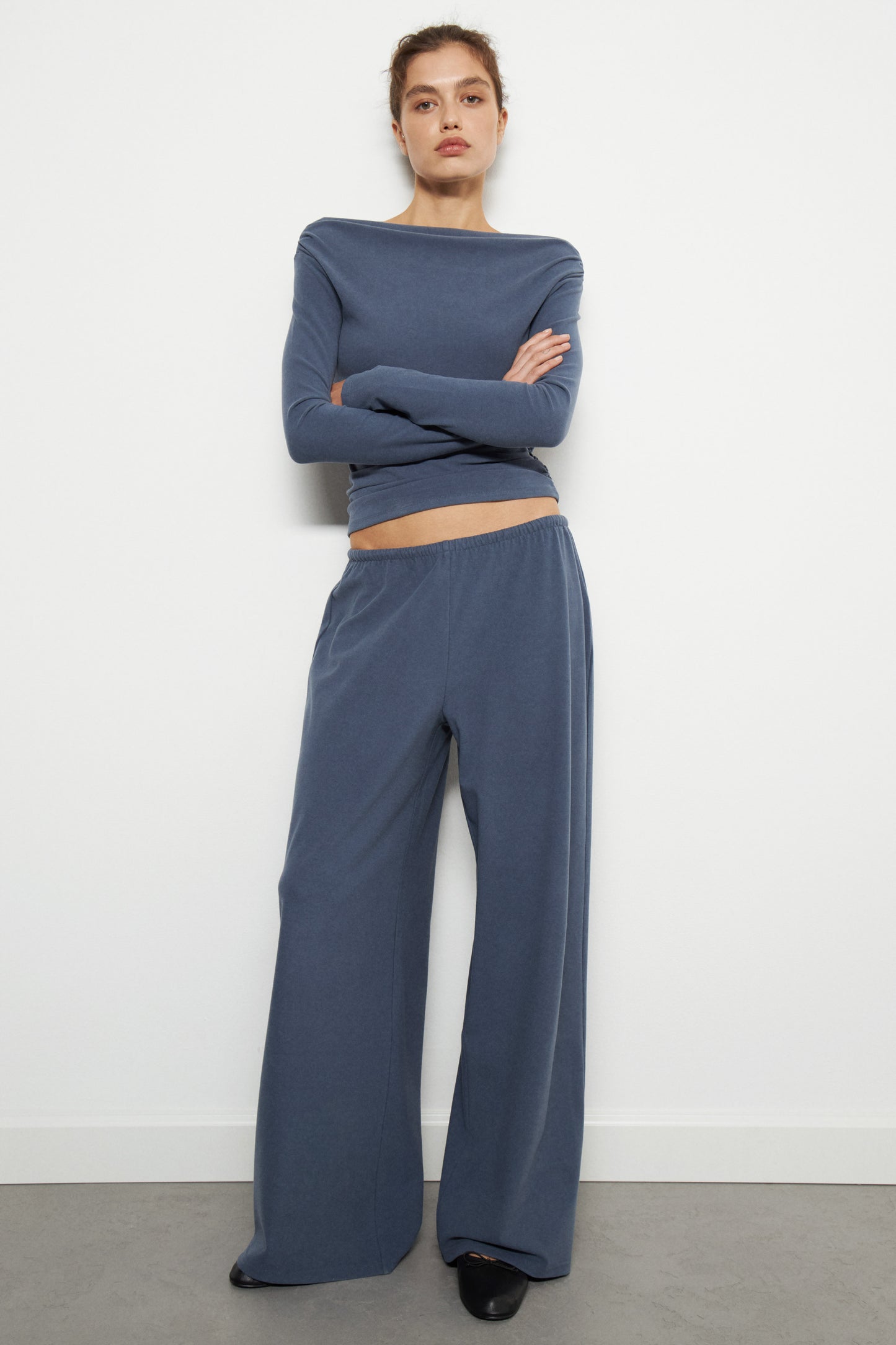 VISCOSE-COTTON WIDE-LEG TROUSERS