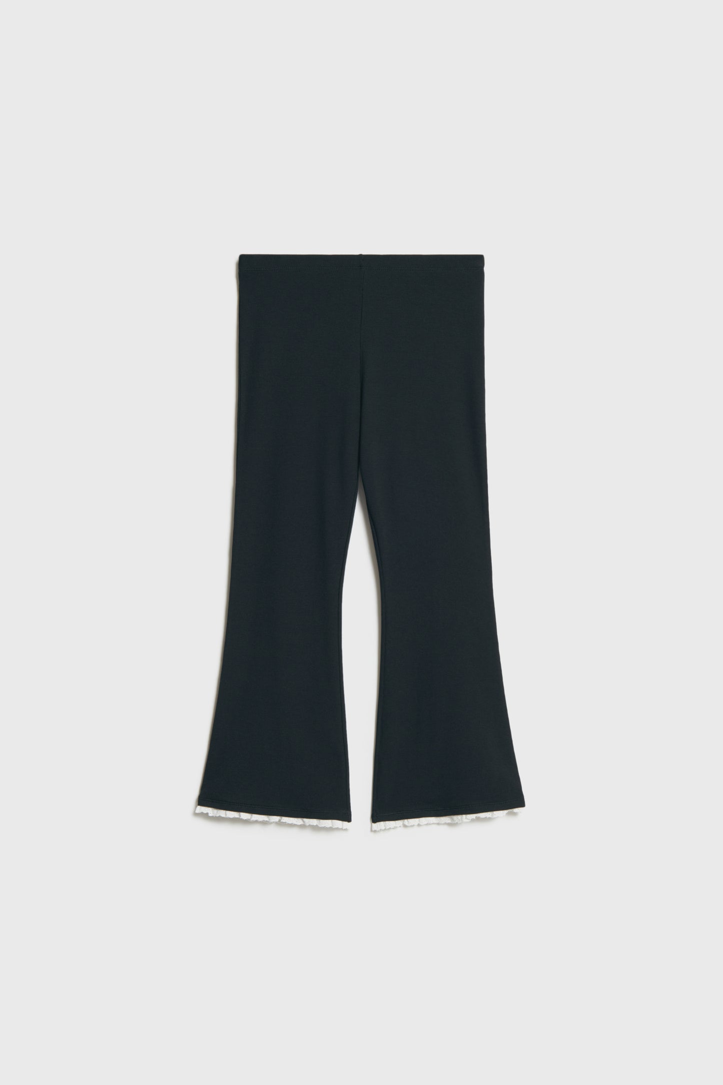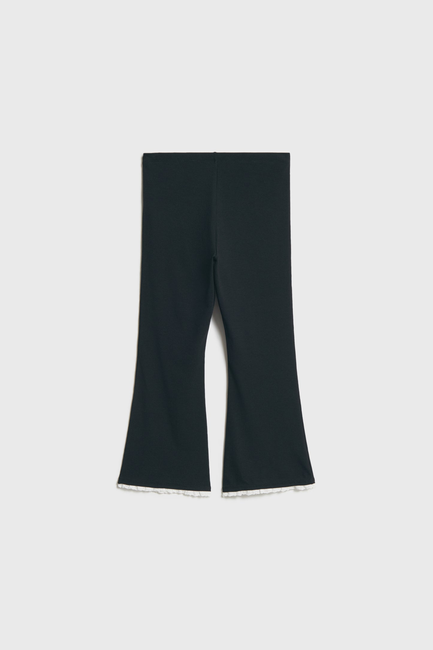 3/4-length trousers in soft viscose and cotton blend. Covered elastic at the waistband and lace trim at the hems.