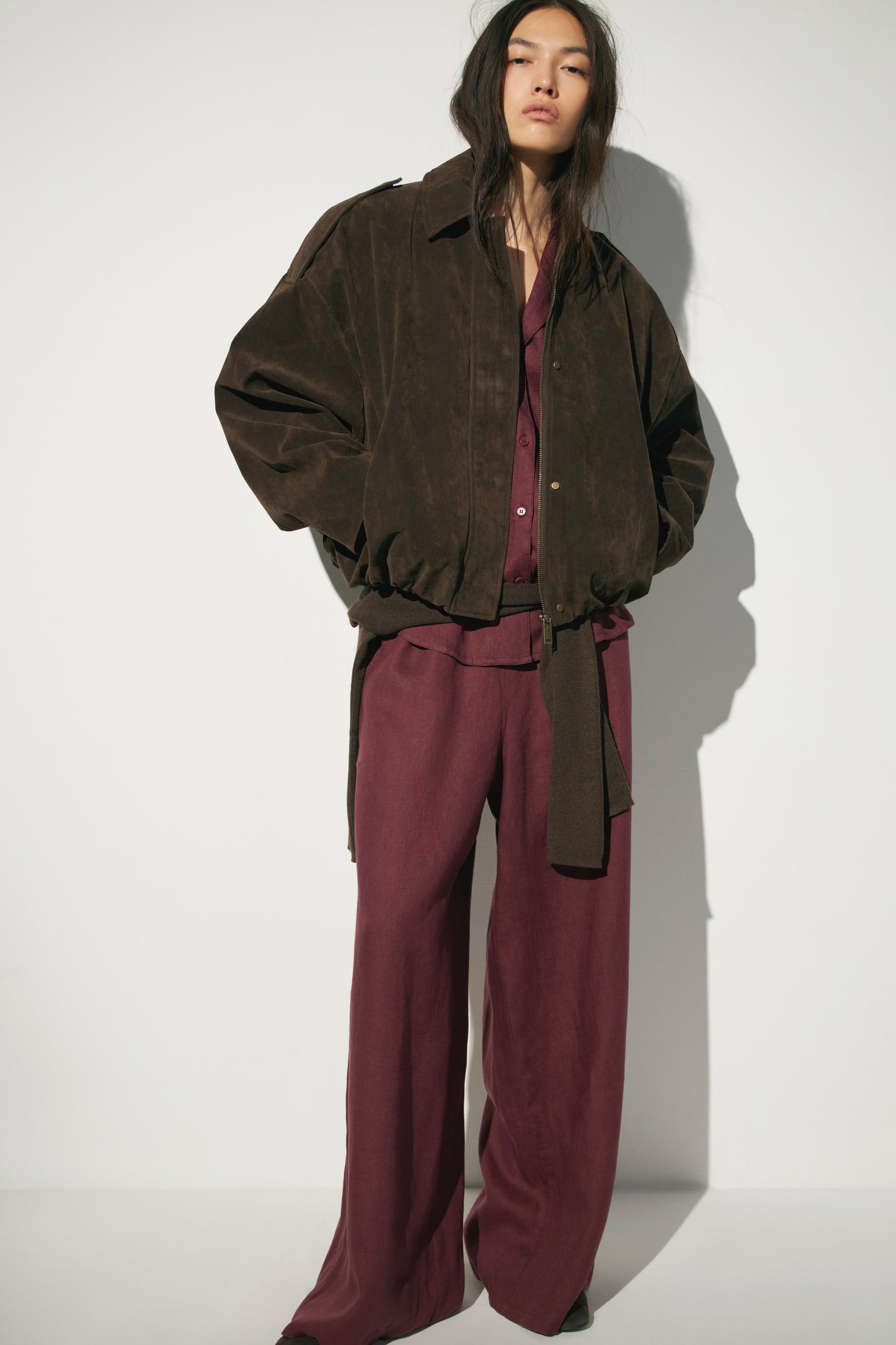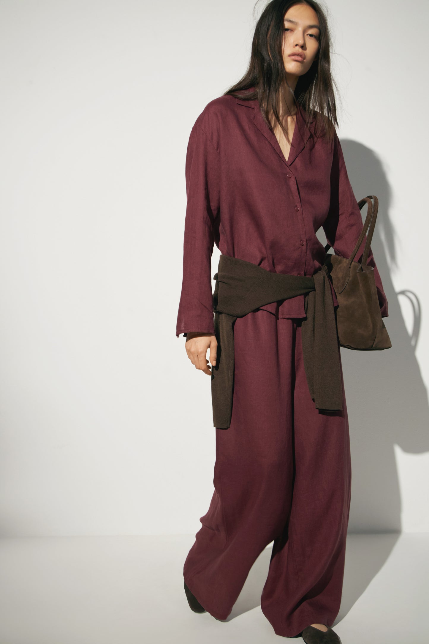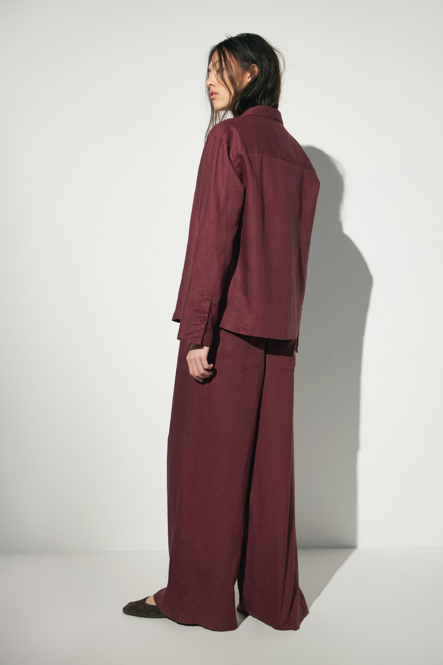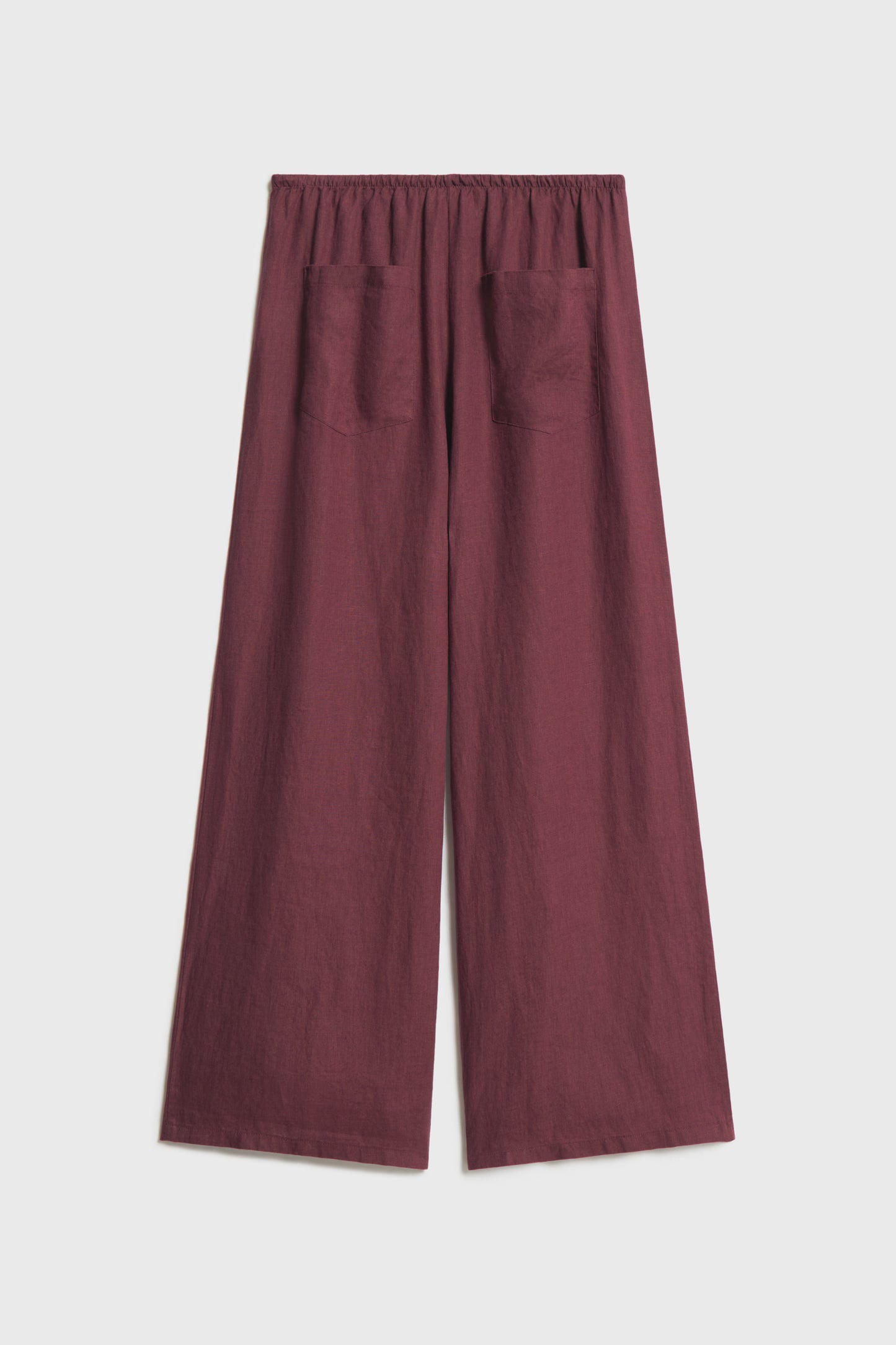 Wide, relaxed-fit trousers in an airy linen that featuring wide legs and a low, elasticated waist with a narrow drawstring. Patch back pockets.