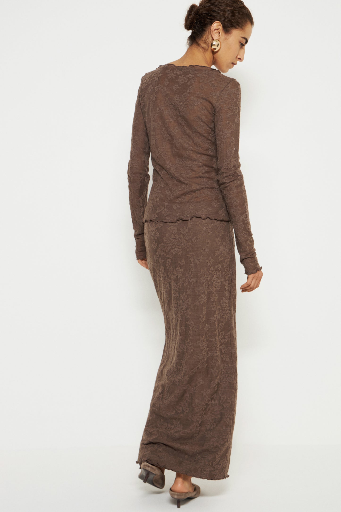 Fitted skirt in a jacquard weave with wool. Elastic waistband. Lined.