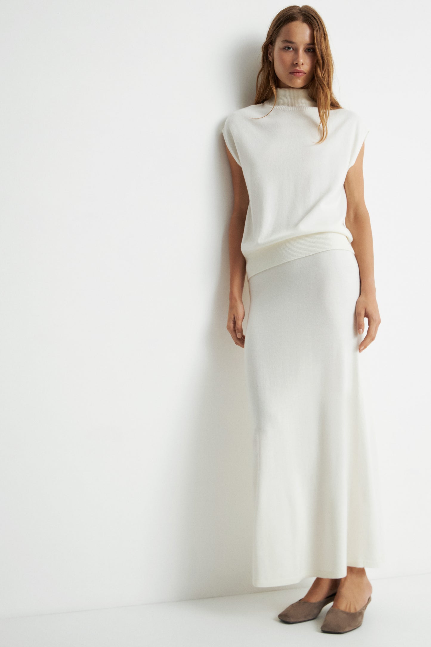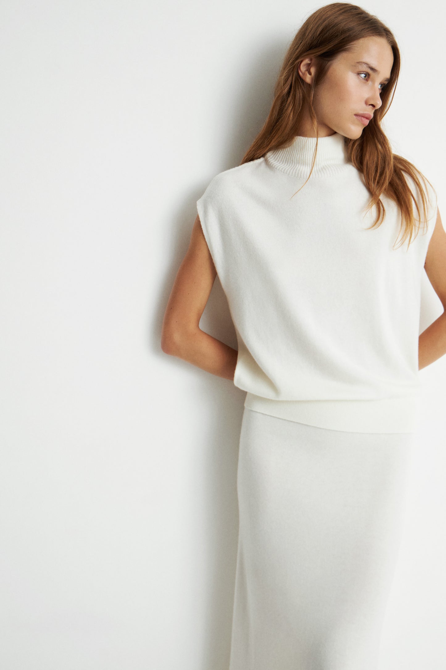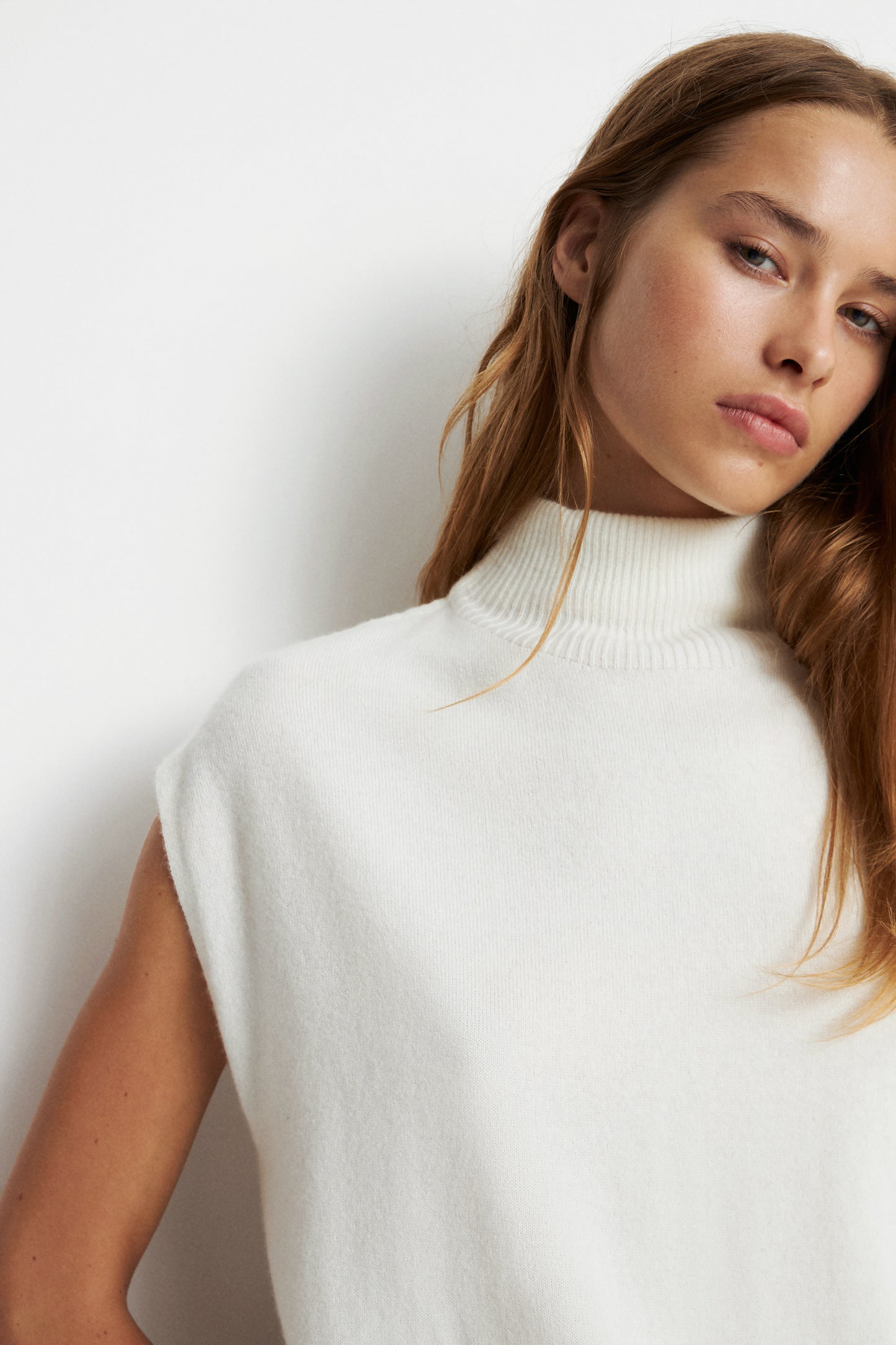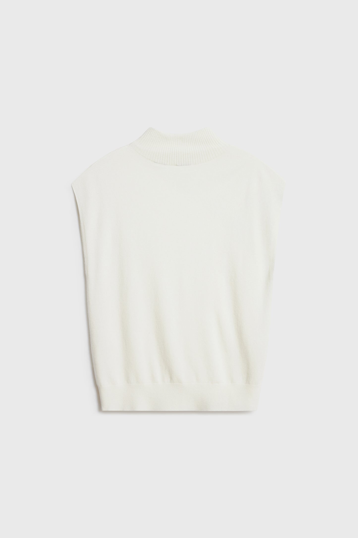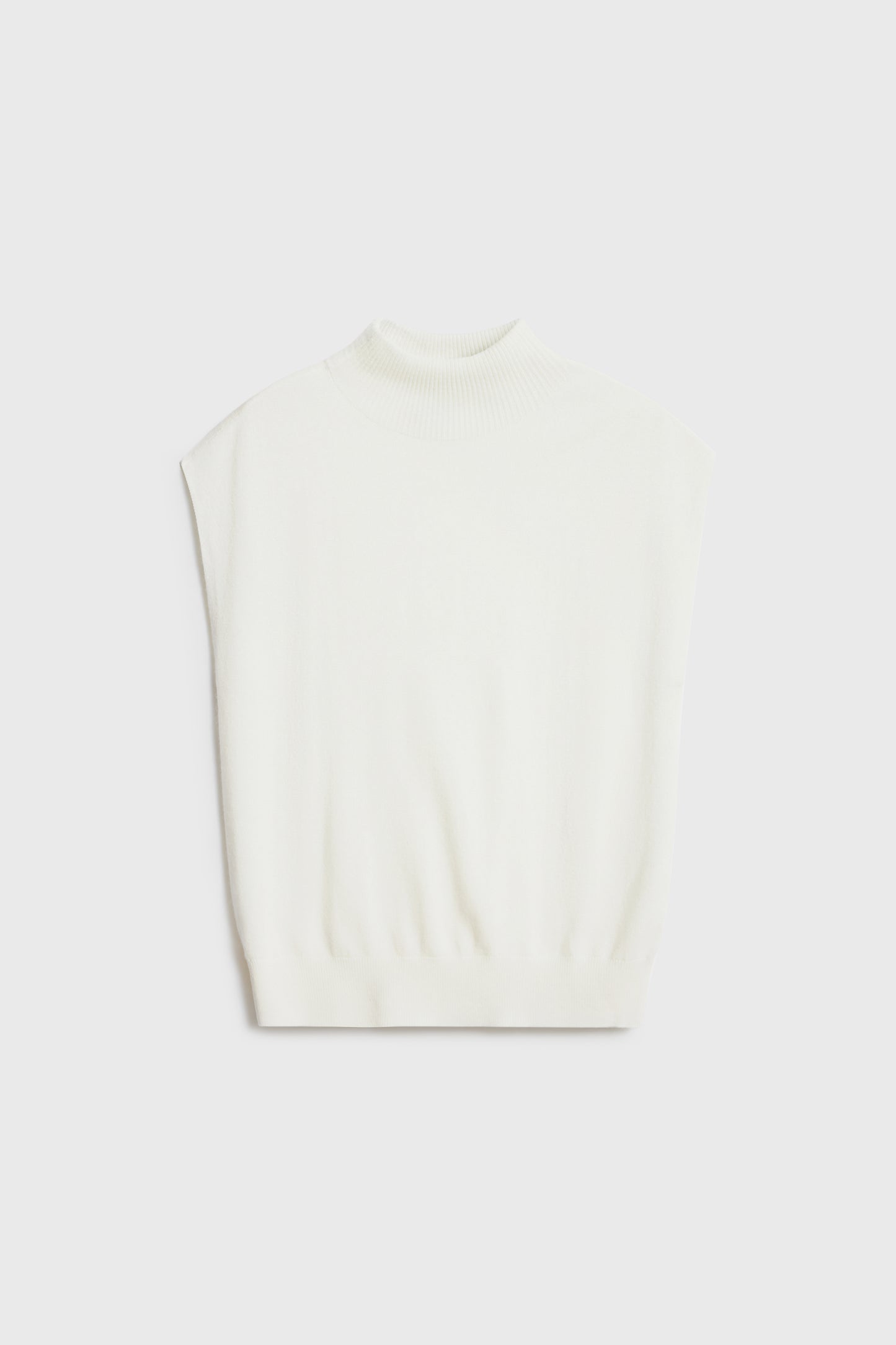 Knitted top made from a wool and cashmere blend. High collar and ribbed edges.